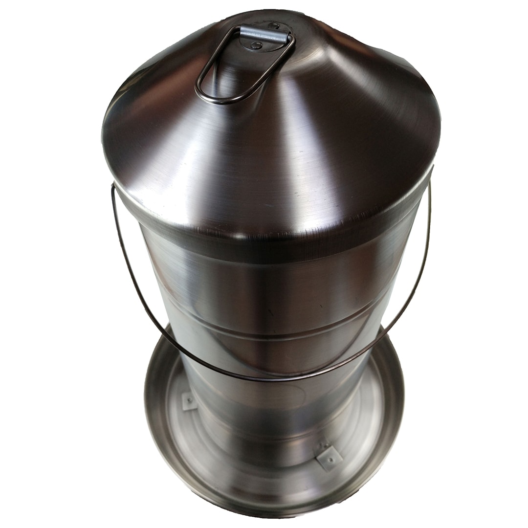 In areas prone to corrosive forces such as salt water, stainless steel chicken feeders are a better choice. They are more resistance to corrosion then galvanised alternative and more durable then plastic alternative. They also look look much better with their polished finish! Each feeder features a lid and a hanging handle to protect and keep feed off the ground.