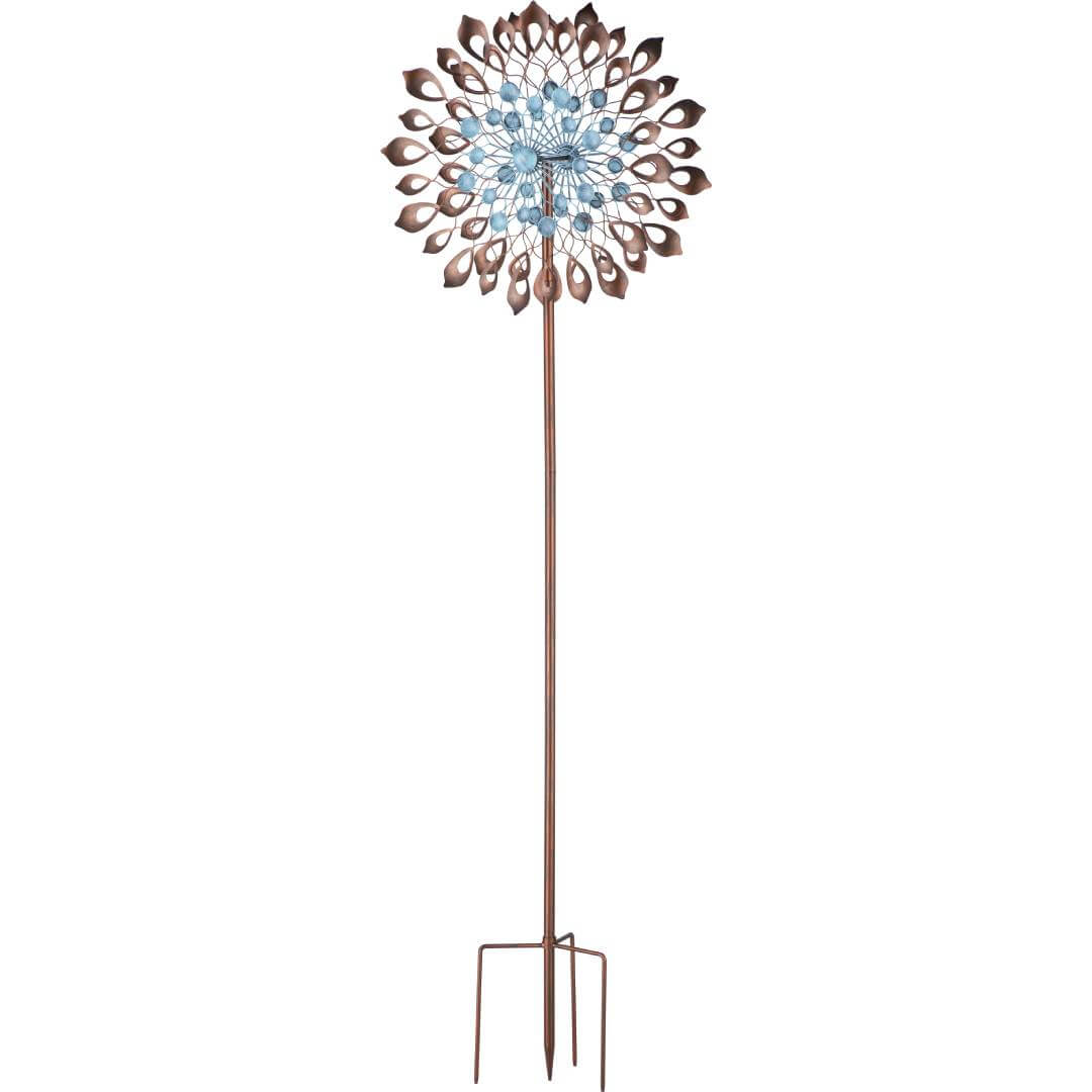 Standing over 2 metres tall and with a 60cm fan this ornamental wind spinner windmill will be sure to draw attention to your garden. Its Bronze, Blue power coated finish will give your garden an outback country feel. They also look great around ponds or waters features. A metal construction gives the wind spinner its strength and the spike legs secure it in the garden.